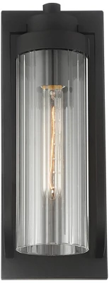 Possini Euro Design Bogata Modern Outdoor Wall Light Fixture Textured Black 15 1/2" Clear Ribbed Glass For Post Exterior Barn Deck House Porch Yard