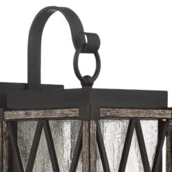 Possini Euro Design Brawley Rustic Industrial Outdoor Wall Light Fixture Bronze Wood Grain 13 1/2" Clear Seedy Glass For Post Exterior Barn Deck House