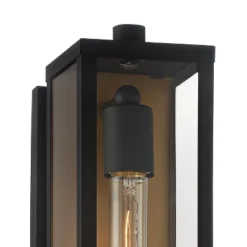 Possini Euro Design Atkins Modern Outdoor Wall Light Fixture Matte Black 14 1/4″ Clear Glass For Post Exterior Barn Deck House Porch Yard Posts Patio