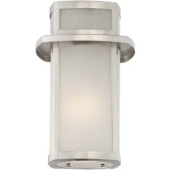 Possini Euro Design Delevan Modern Outdoor Wall Lights Fixture Set Of 2 Brushed Nickel 11 1/4″ Frosted Seedy Glass For Post Exterior Barn Deck House