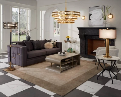 Possini Euro Design Granview Modern Table Lamp 32 1/2″ Tall Brass Column Taupe Organza Outer Off White Linen Inner Drum Shade For Bedroom Living Room
