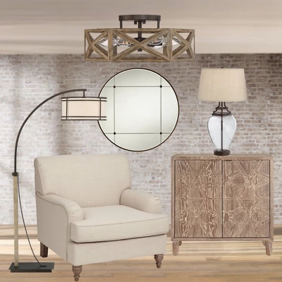 Possini Euro Design Moorcroft Modern Farmhouse Ceiling Light Semi Flush Mount Fixture 14 1/2″ Wide Dark Wood Bronze 6-Light Hexagon Frame For Bedroom